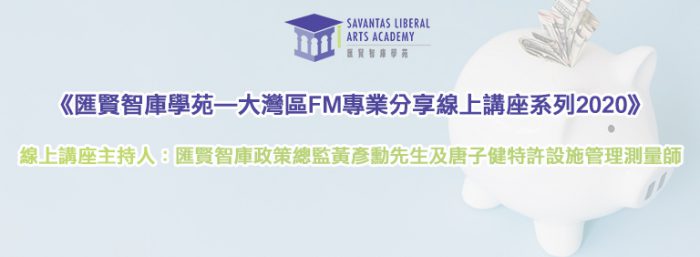 為配合國家對大灣區的發展規劃目標,匯賢智庫學苑通過線上講座,邀請到資深保險業界專業人士王德輝先生(Mr. Ken Wong)為大家分享粵港兩地的保險業務知識和個案以及探討大灣區內未來的發展機遇。講座特別適合在大灣區內生活與發展和有興趣認識保險內多元的物業及設施管理專業知識和實戰經驗。儘管疫情持續,學苑希望能繼續為學員提供大灣區FM的學習交流機會,敬請學員留意學苑稍後公佈的詳情。 (線上講座主持人:匯賢智庫政策總監黃彥勳先生及唐子健特許設施管理測量師) > 詳情