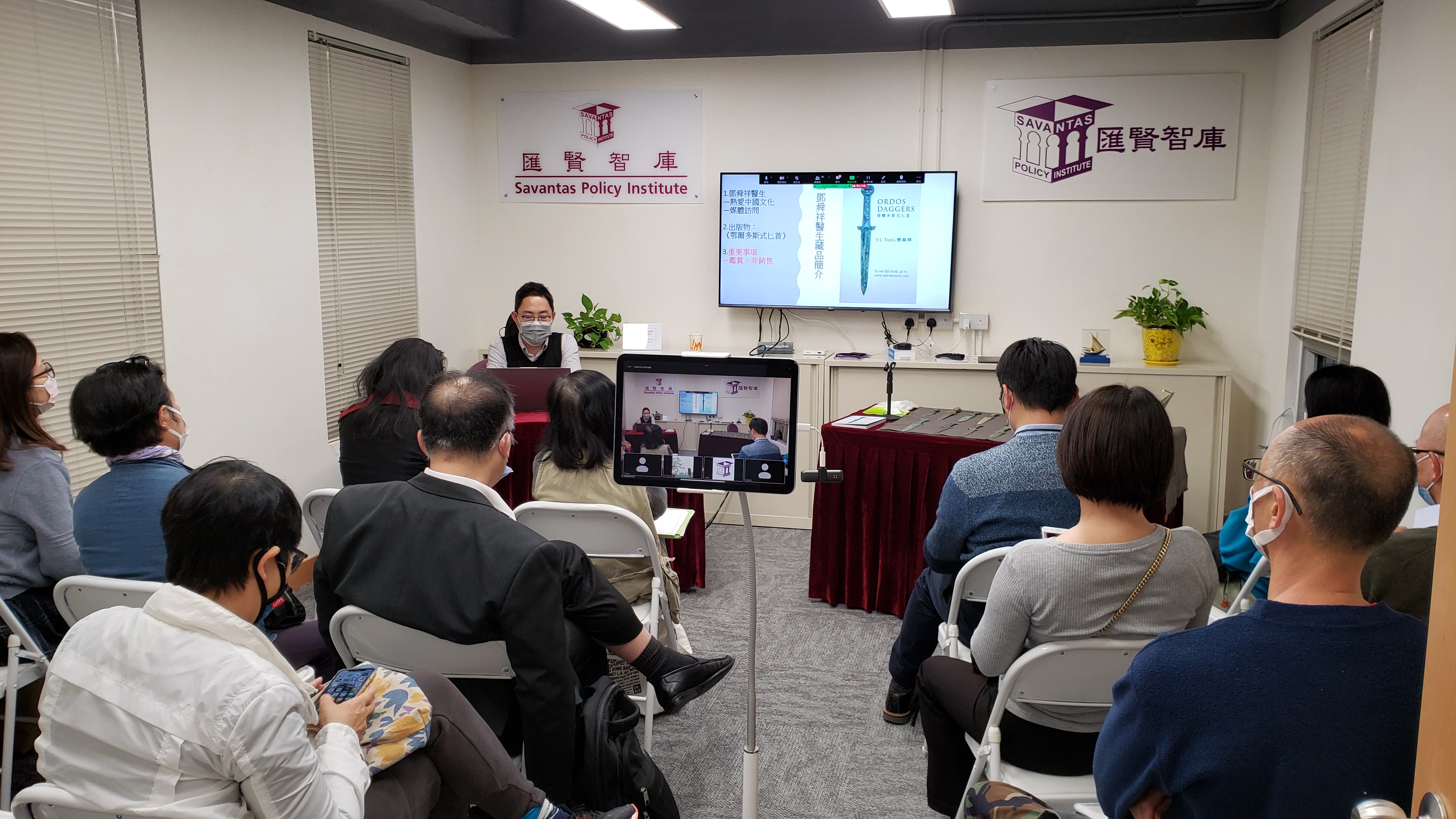 由汇贤智库学苑举办之「漠朔雄风 ‧ 中国北方系青铜短剑鉴赏」在线上线下座谈会在2021年12月8日晚上顺利举行。是次座谈会由中国香港水下考古文化研究会主席、香港中华文化总会副会长蒋白浪先生担任嘉宾,介绍青铜器及其历史,并展出由邓舜祥医生借出的中国北方系青铜短剑给现场参加者近距离观赏,气氛非常热烈。