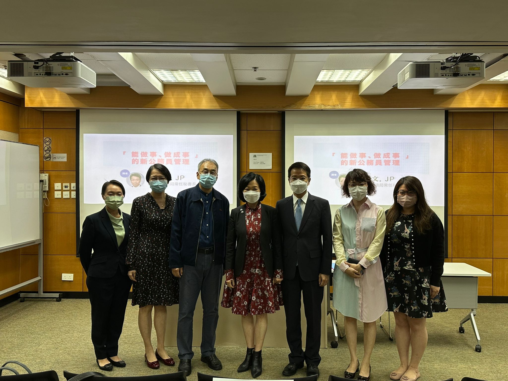 梁卓文先生以「政府人事管理」爲题,介绍了公务员事务局的工作。他提到人事管理是各级人员的核心工作。在日本文化,人事管理是高层管理人员重要的工作。公务员事务局的主要政策範畴包括:一、聘任政策、政务职系管理及一般职系管理;二、薪酬及服务条件;叁、操守纪律及员工关係;四、政府编制;五、公务员培训发展;及六、2019冠状病毒病疫苗接种计划。《行政长官2022年施政报告》提出四方面优化公务员管理,包括:更新《公务员守则》、强化赏罚制度、强化公务员培训及优化现行动员机制。最後,梁卓文先生分享了一些对公务员的迷思与事实,并透过问答环节解答了与会者有兴趣了解的问题,例如政府在抢人才和种族共融方面的工作、投考政务主任和纪律部队的「温馨提示」等。