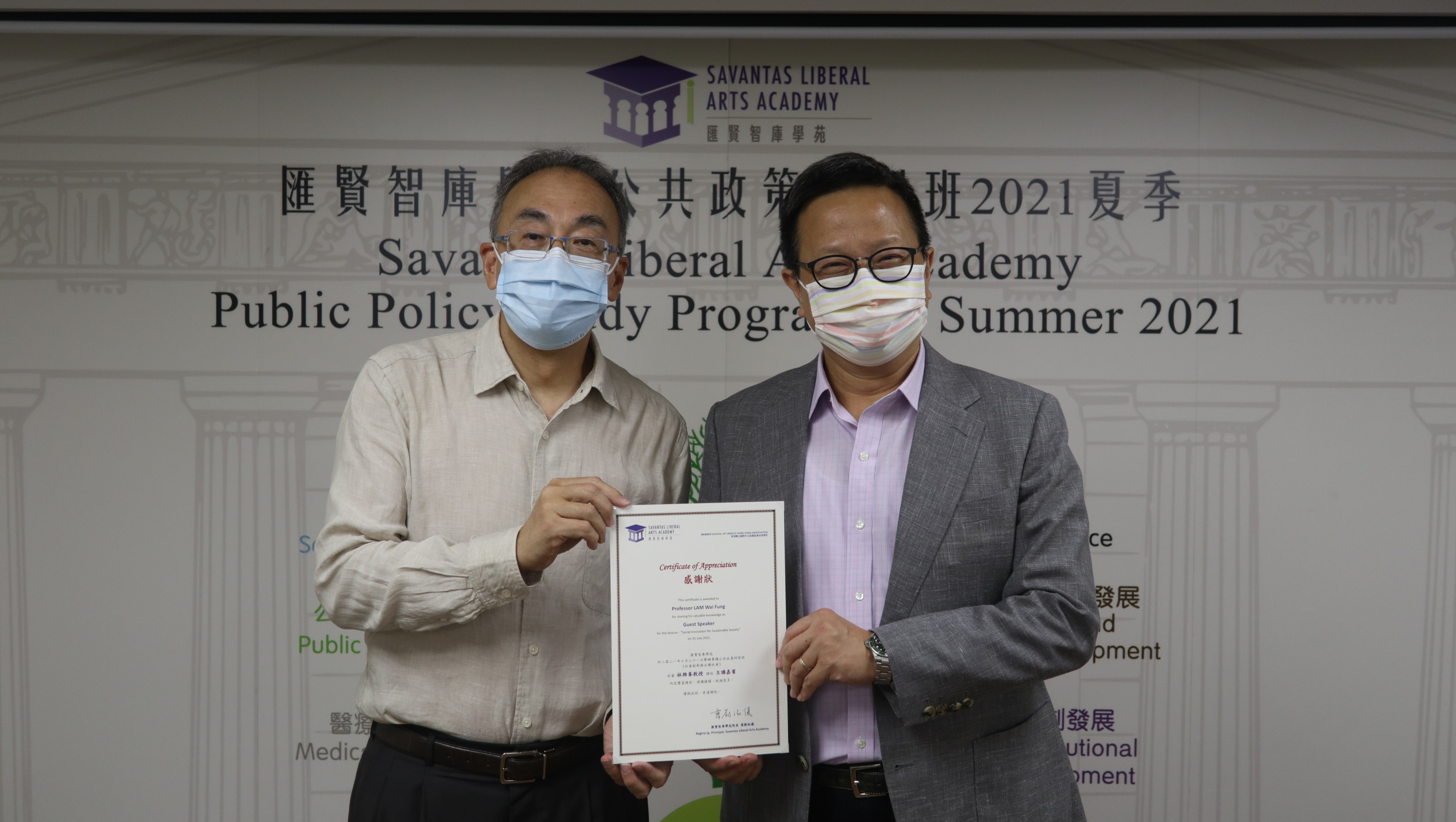The tenth lecture of the "Savantas Liberal Arts Academy Public Policy Study Programme Summer 2021" was held on 31 July. Professor Lam Wai Fung, Department of Politics and Public Administration, The University of Hong Kong, was the speaker. The lecture was titled " Social Innovation for Sustainable Society”. Participants learnt about the concept of a sustainable society, try to think outside the box, and find solutions in public administration from the perspective of social innovation. > Details