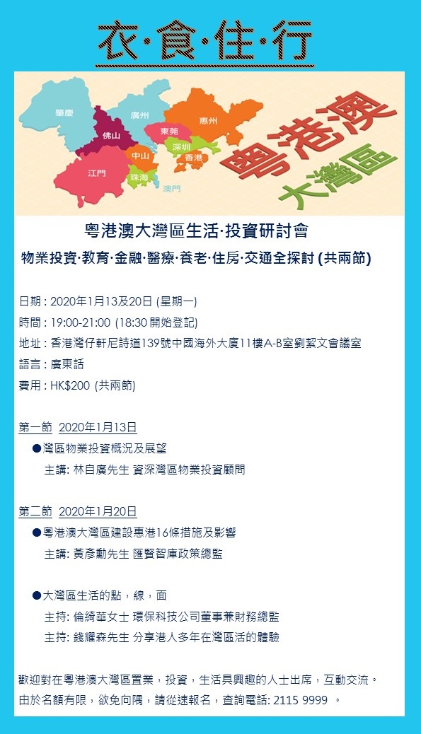 歡迎對在粵港澳大灣區置業,投資,生活具興趣的人士出席,互動交流。